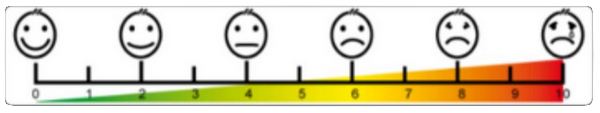 Za oceno bolečine se v medicini uporablja vizualna analogna skala (shema spodaj): stopnje od 0=ni bolečine do 10=neznosna bolečina. Naša raziskava v RS na 240 ženskah je pokazala, da svojo menstrualno bolečino ocenjujejo s 7 (13 %), 8 (9 %), 9 (4 %) in 10 (1 %), kar presega podatke iz strokovne literature. Prve 2-3 dni menstruacije bolnica ni normalno aktivna, kar močno vpliva na kakovost njenega življenja. Gre za 10 % življenja v rodni dobi.